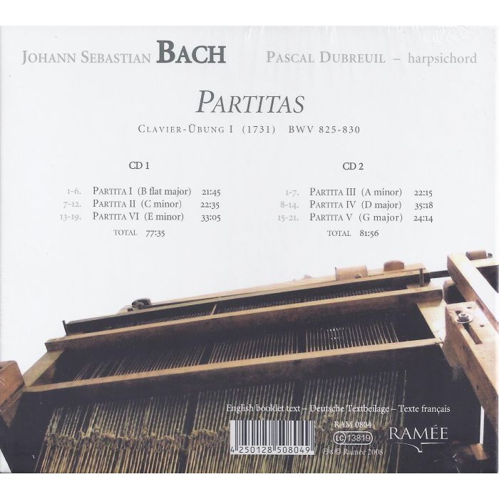 At the time of their release, the six Partitas caused quite a stir among music lovers in Germany. Celebrated by some and criticized by others, however, the work has always been considered a milestone in the compositional process for harpsichord. Most critics emphasized the extremely high demands on the technical level and complexity of the composition. Johann Nikolaus Forkel wrote in his Bach biography: "One had never seen and heard such excellent piano compositions. Whoever learned to recite some of the pieces quite well, could make his fortune in the world with it." The French harpsichordist Pascal Dubreuil sets new standards in the history of interpretation of these works with this recording.
