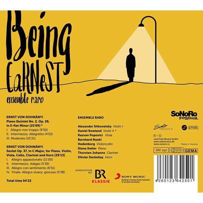 Ensemble Raro was formed in 2004 by four extraordinary young musicians: pianist Diana Ketler, violinist Alexander Sitkovetsky, violist Razvan Popovici and cellist Bernhard Naoki Hedenborg. Their goal is to create unforgettable musical moments and to combine innovative approach with rich European tradition of intimate and sincere chamber music making. In 2011 the Ensemble Raro welcomed new members: violinists Alina Pogostkina and Erik Schumann, clarinetist Thorsten Johanns and hornist Olivier Darbellay. For this release they have chosen the music of Hungarian pianist and composer Erno Dohnanyi.