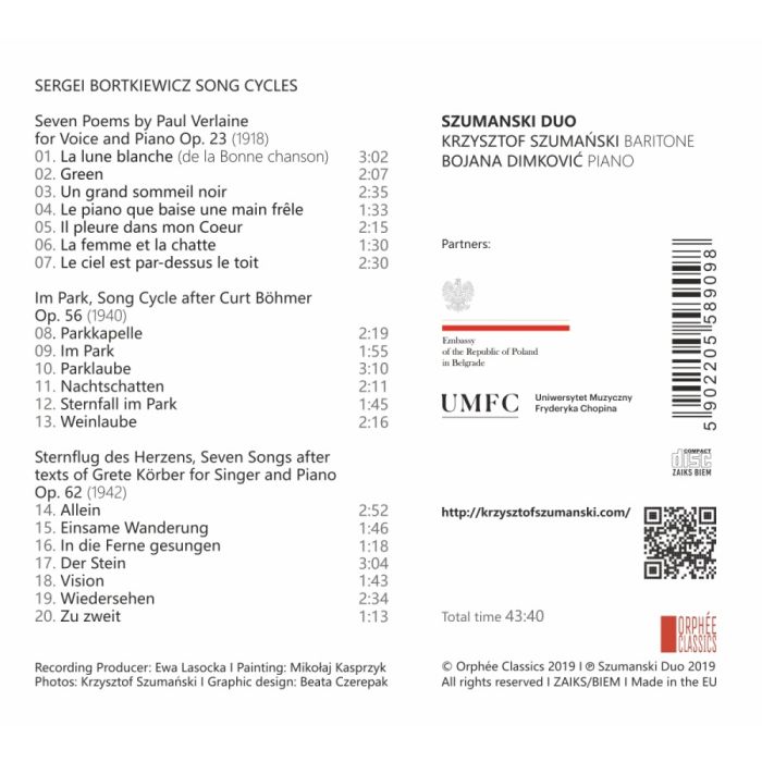 Płyta nagrana jest przez Szumański Dimković Duo który tworzą Krzysztof Szumański baryton i Bojana Dimković pianistka. Ich głównym celem jest odkrywanie, wciąż nienagranej muzyki oraz muzyki o szczególnym znaczeniu kulturowym.
