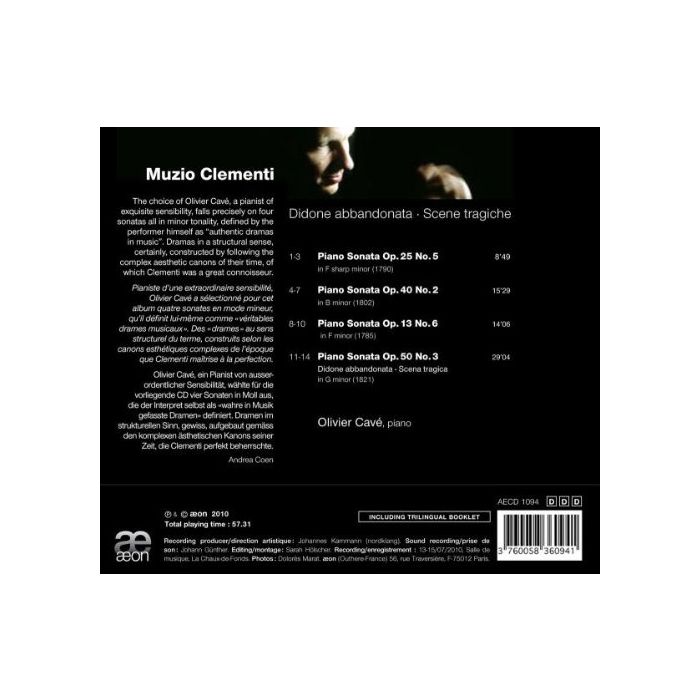 The choice of Olivier Cavé, a pianist of exquisite sensibility, falls precisely on four sonatas all in minor tonality, defined by the performer himself as “authentic dramas in music”. Dramas in a structural sense, certainly, constructed by following the complex aesthetic canons of their time, of which Clementi was a great connoisseur