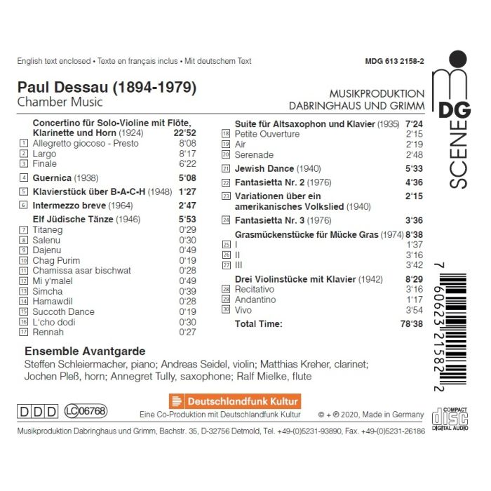 Paul Dessau composed more than 450 works from all the genres, but scarcely a single one of them continues to meet with recognition and representation in today’s concert world. The go-getters of the Ensemble Avantgarde put an end to this unfortunate state of affairs with an impressive overview of the chamber oeuvre of this composer whose vicissitudinous career vividly reflects the dramatic upheavals and achievements of the twentieth century.