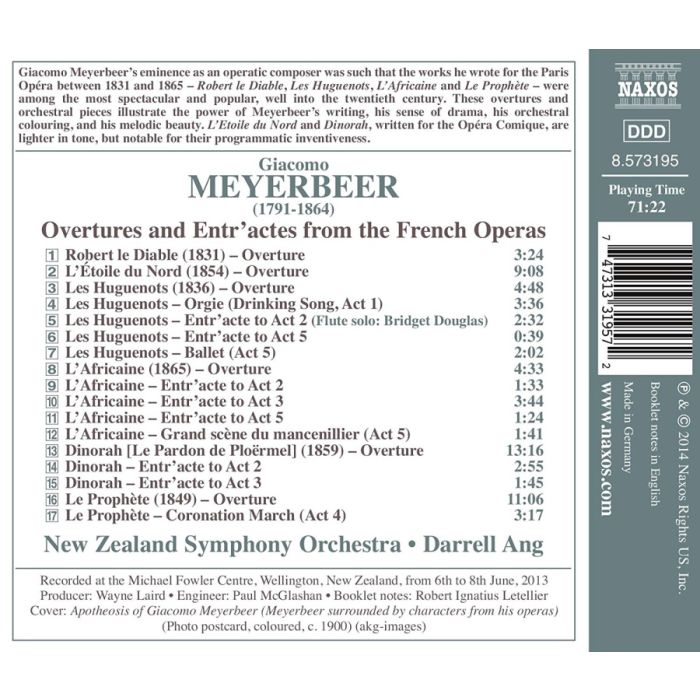 Meyerbeer: Overtures and Entr’actes from Robert le Diable, L’Etoile du Nord, Les Huguenots, L’Africaine, Dinorah, Le Prophète