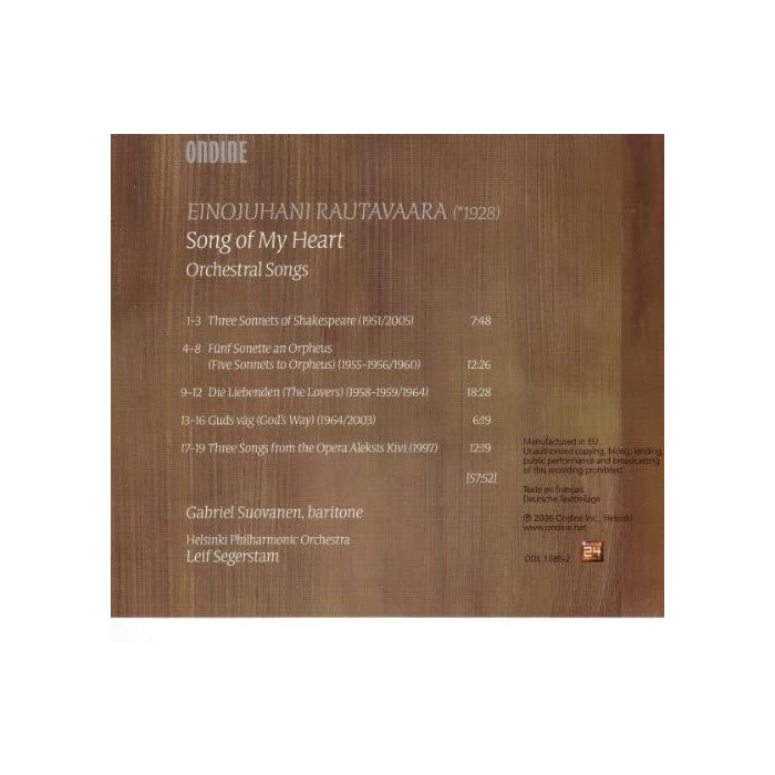 "All these works are hardly noticeable in Rautavaara's long journey through the stylistic confusion of the 20th century - his own language is crystal clear almost everywhere. Gabriel Suovanen proves to be the ideal interpreter with his darkly timbred baritone, Leif Segerstam feels in his element with the rich scores" • FonoForum 04 / 07: