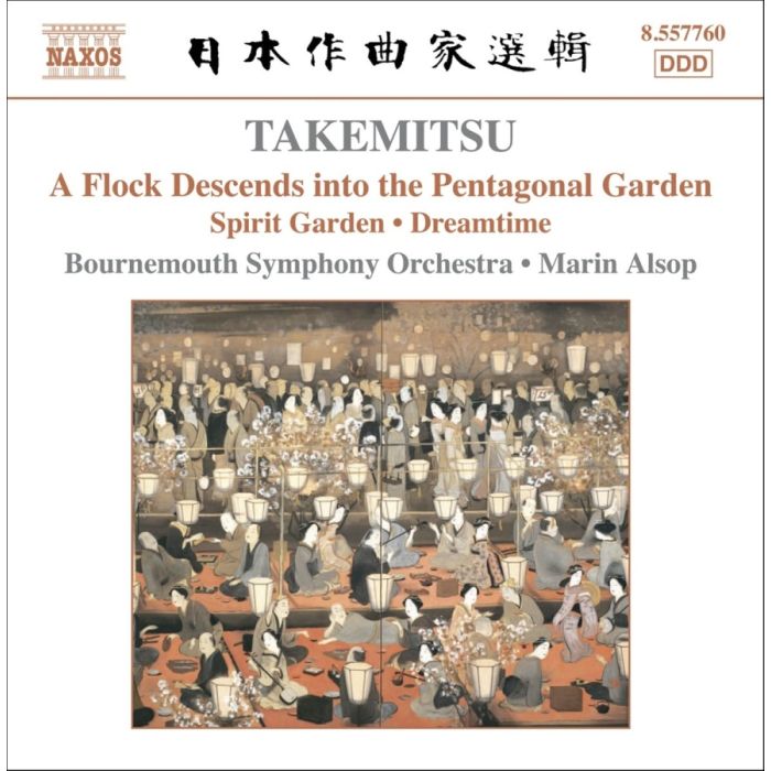 Now regarded as one of the most important composers of the second half of the twentieth century, Toru Takemitsu was the first Japanese composer to gain international status. The works on this disc cover Takemitsu’s career from the early Solitude Sonore to Spirit Garden, ‘my experiment with and on-going inquiry into orchestral colour and melody’, composed two years before his death. Inspired by a dream, A Flock Descends into the Pentagonal Garden has become one of Takemitsu’s most performed works, notable for the interweaving of silences, passages of randomness, surges of dissonance and delicate fragmentary melodies.